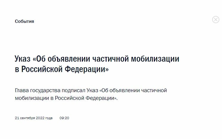 Для захисту нашої батьківщини та цілісності вважаю за необхідне підтримати часткову мобілізацію», — сказав путін у своєму зверненн 0642.ua »