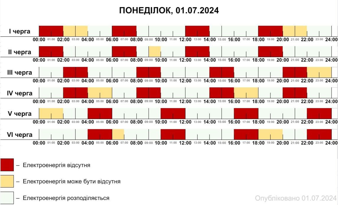 У понеділок, 8 липня, заходи обмеження споживання електроенергії діятимуть протягом усієї доби, повідомили в Укренерго. “З 00:00 до 14:00 обленерго будуть застосовувати дві черги відключень, з 19:00 до 22:00 – чотири черги. glavnoe.ua »