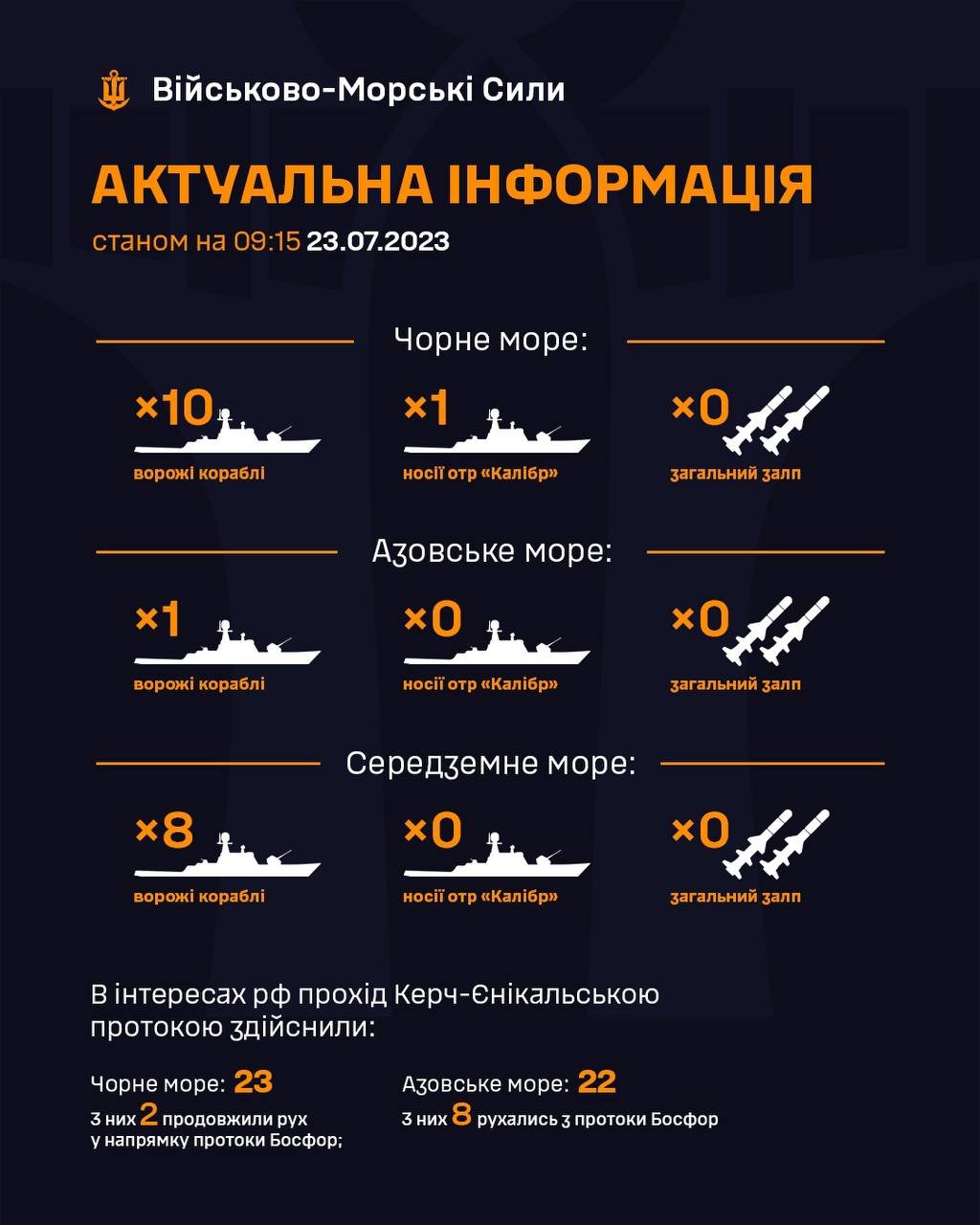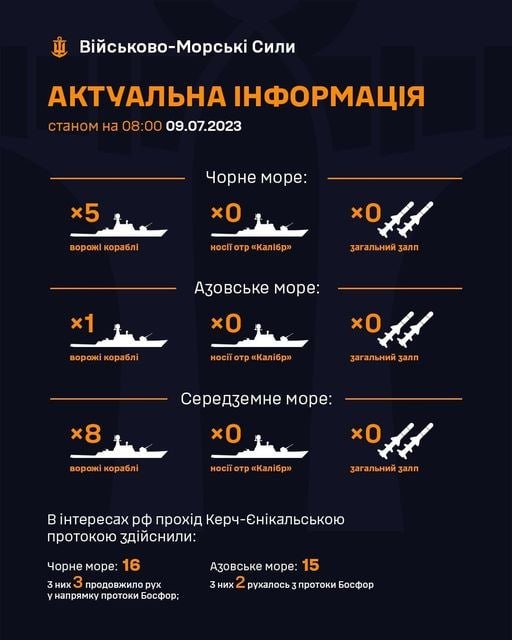 Корабельне угруповання ворога розгорнуто в кількості 11 одиниць - 9 в Чорному та 2 в Азовському морях. 048.ua »