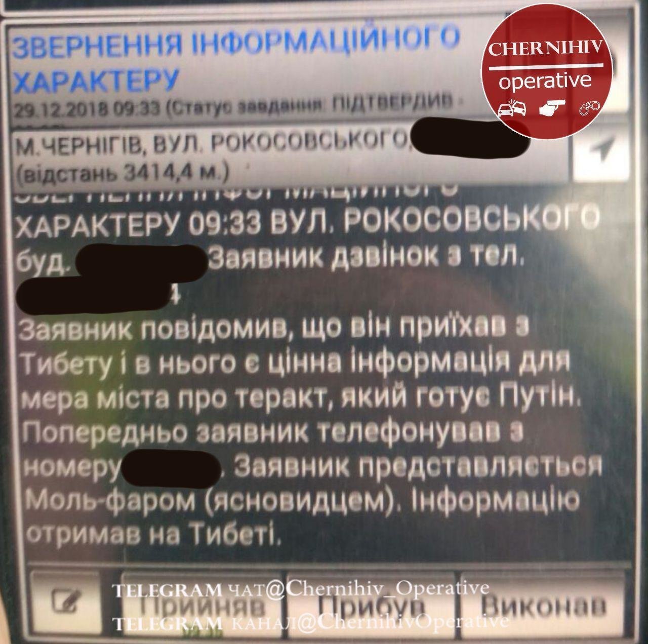 Вызов дня: черниговец вызывает патрульных, так как имеет информацию для мэра