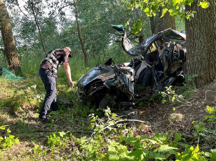 Легковушка выехала на обочину и врезалась в дерево. Авария произошла вблизи села Веселиновка Броварского района. k.img.com.ua »