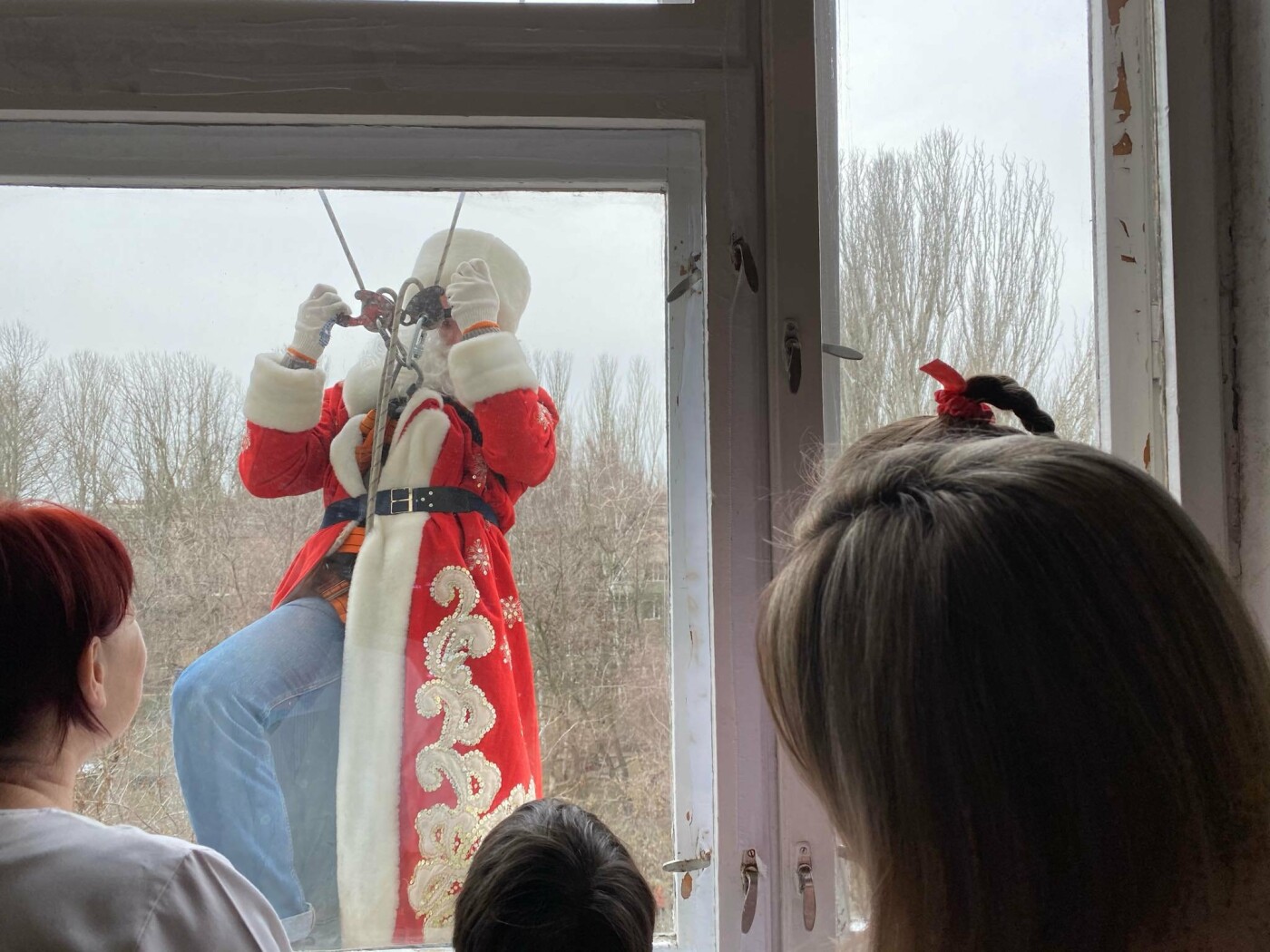 В Николаеве Деды Морозы спустились с крыш больницы и поздравили детей с новогодними праздниками. 0512.com.ua »