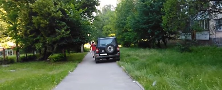 Пользователь, выложивший видео в соцсеть, утверждает, что водитель внедорожника постоянно ездит по тротуару, а рядом - детский сад. 0564.ua »