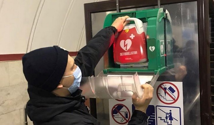 В киевском метро полицейская с помощью дефибриллятора спасла жизнь мужчине