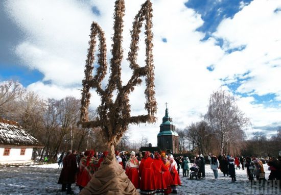 Высота композиции из дидухов из пшеничных колосьев составляет 7,5 метра. ru.tsn.ua »