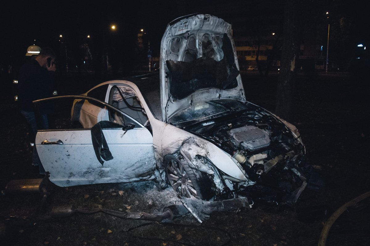 Honda с водителем и тремя пассажирами горела ночью в Киеве 44.ua »