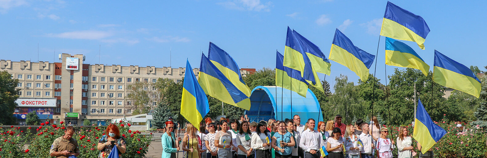 Близько 9.45 у центрі міста почали збиратися люди. У руках вони тримали українські прапори. Приблизно о 10.00 біля фонтана "Садко" на флагшток підняли прапор України 0542.ua »