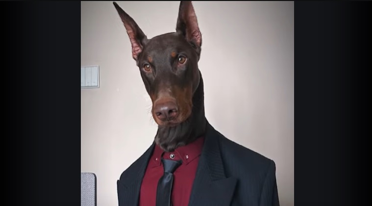 Доберман из Китая стал моделью и демонстрирует одежду для людей (видео)