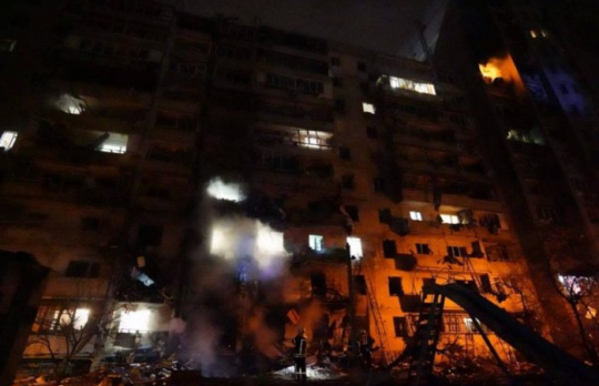 В Киеве от попадания обломков вражеского летательного аппарата загорелся дом