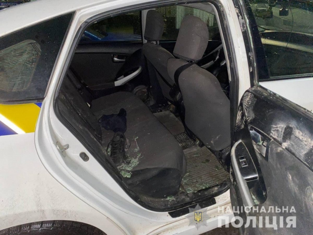 При задержании мужчина разбил заднее боковое стекло служебного авто, сорвал жетон и нагрудную камеру сотрудника полиции. k.img.com.ua »