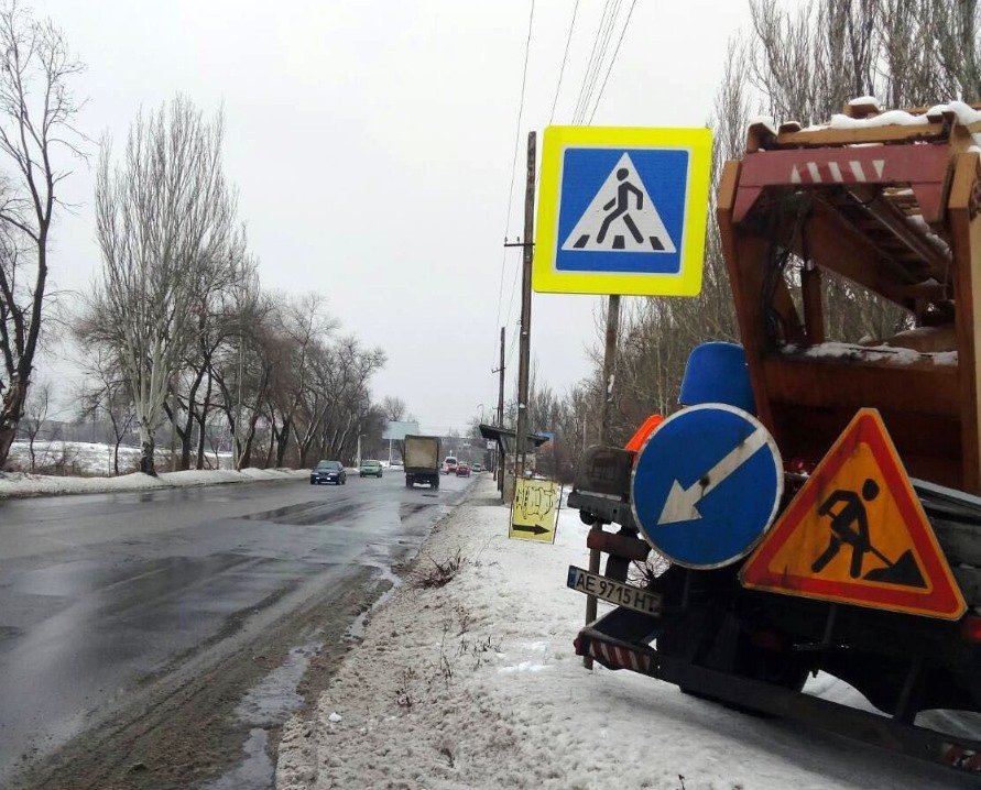 Новый дорожный знак на пешеходном переходе в Днепре 056.ua »
