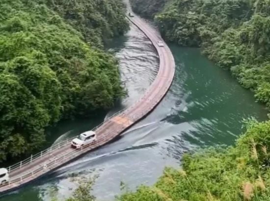 Устрашающее чудо инженерии: что известно про плавучий мост, на котором авто едут по поверхности реки — видео