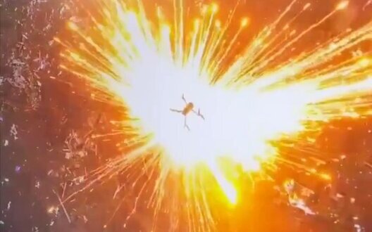 Вражеский беспилотник взрывается в воздухе после атаки украинского дрона-сеткомета. ВИДЕО