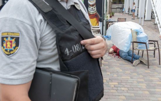 Появились фото с места убийства ветерана АТО во дворе гостиницы в Бердянске