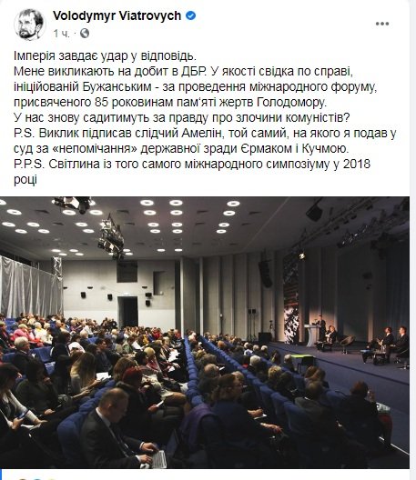 В качестве свидетеля по делу о проведении международного форума, посвященного 85 годовщине памяти жертв Голодомора. 0564.ua »