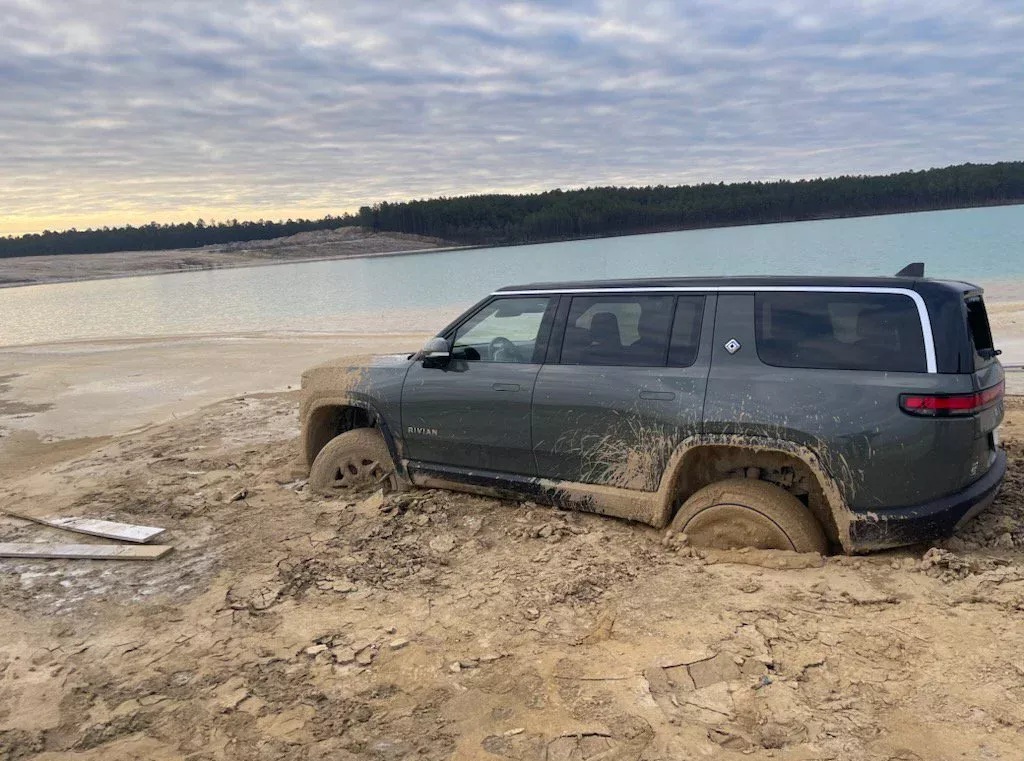 Пещанный пляж стал непреодолимой преградой для Rivian R1S. Автомобиль простоял в ловушке несколько дней и лишь тяжелая техника смогла вытащить его. focus.ua »