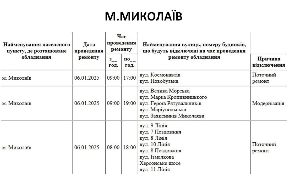 планові відключення світла - Миколаїв 0512.com.ua »