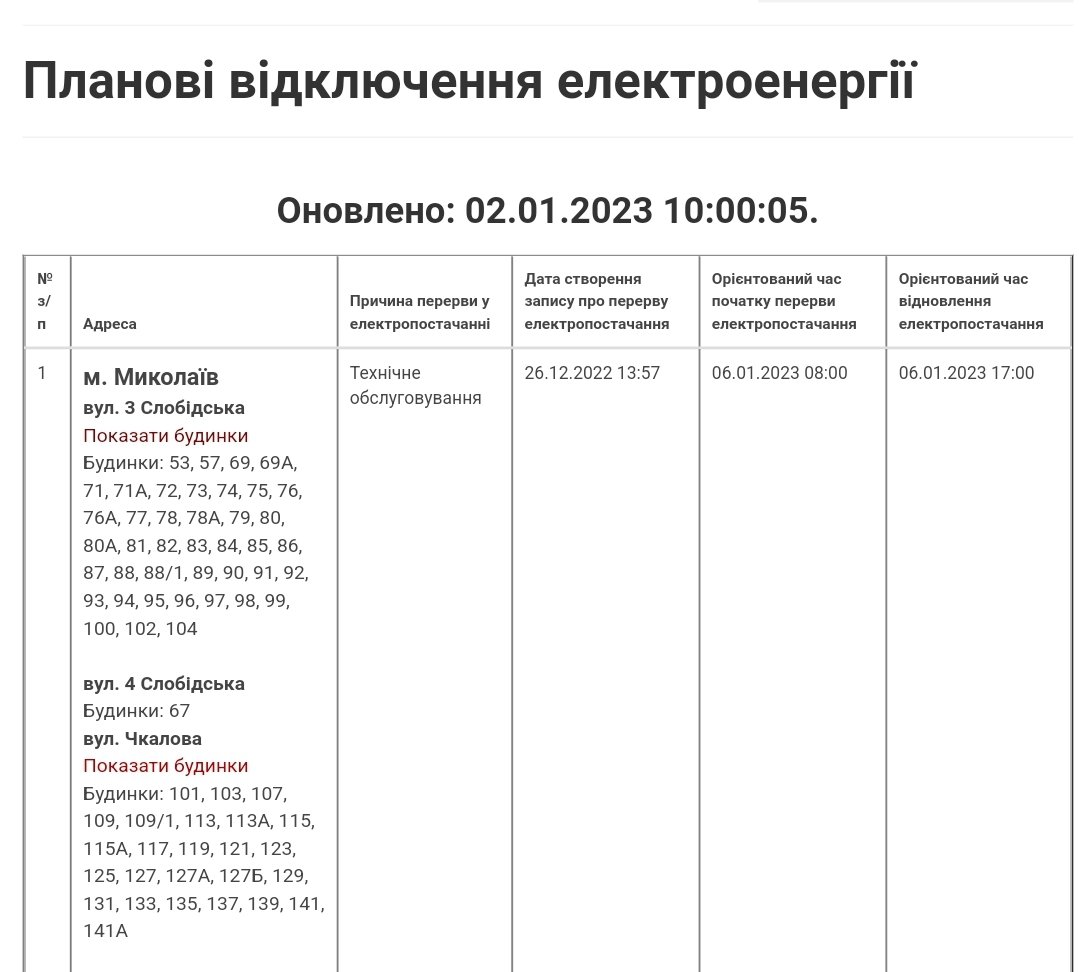 Відключення електроенергії у Миколаївській області 26 жовтня 0512.com.ua »