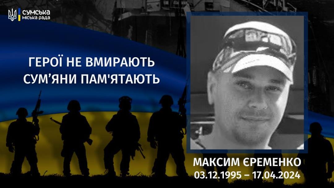 Минув рік з дня загибелі Максима ЄременкаПро це повідомили в Сумській міськраді 0542.ua »Суспільство2025-5-2 10:43