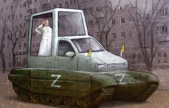 Польский еженедельник Wprost вынес на обложку нового номера карикатуру с "папамобилем" папы Франциска на шасси российского БТР с Z-символикой news.liga.net »