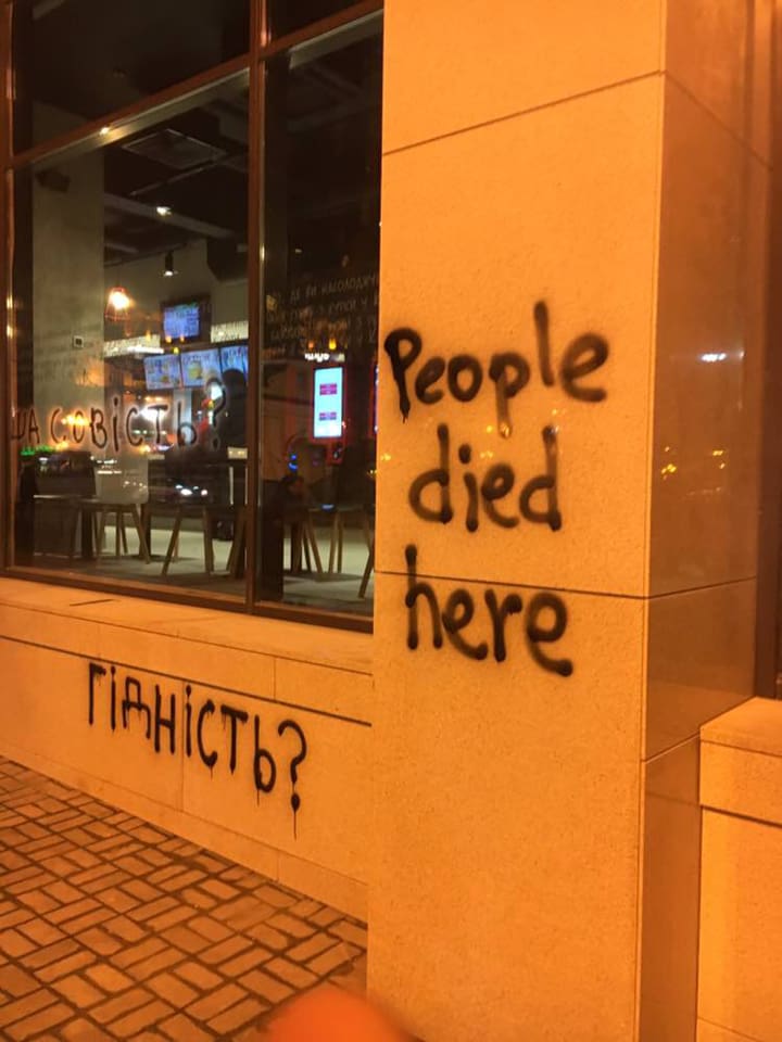 В Киеве сторонники организации С14 21 ноября оставили надписи на стенах ресторана быстрого питания сети KFC, который открылся в сгоревшем во время Майдана в феврале 2014 года Доме Профсоюзов. "В... glavred.info »