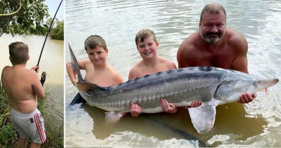 Отец и брат помогли мальчику поднять рыбу на берег. ru.tsn.ua »
