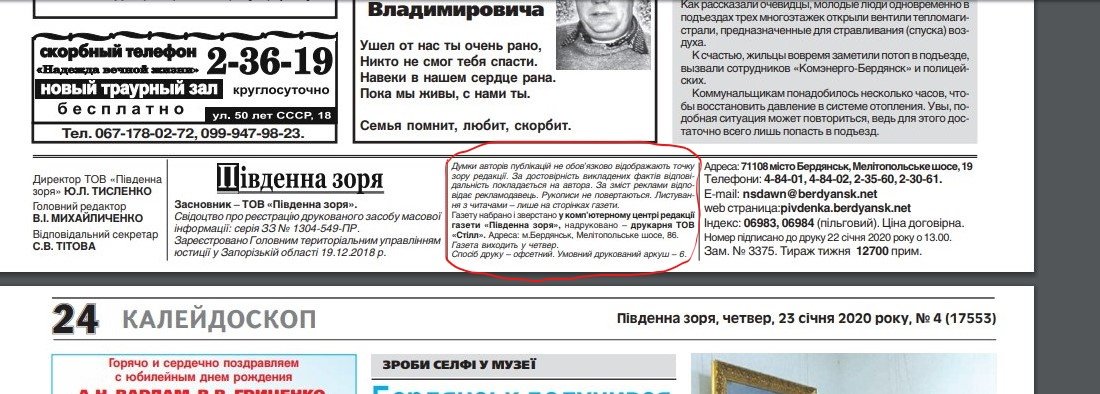 Бердянский горсовет заказал газете "Південна зоря" публикаций на 148 500 гривен. 061.ua »