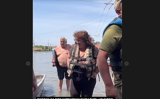 Женщина, жившая под обстрелами российских захватчиков, теперь спасается от воды, которая продолжает прибывать в город. ru.tsn.ua »