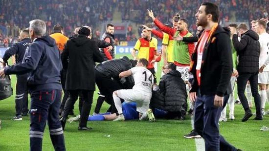 Дикость в Турции: фанат прорвался на поле и избил вратаря угловым флажком (видео)