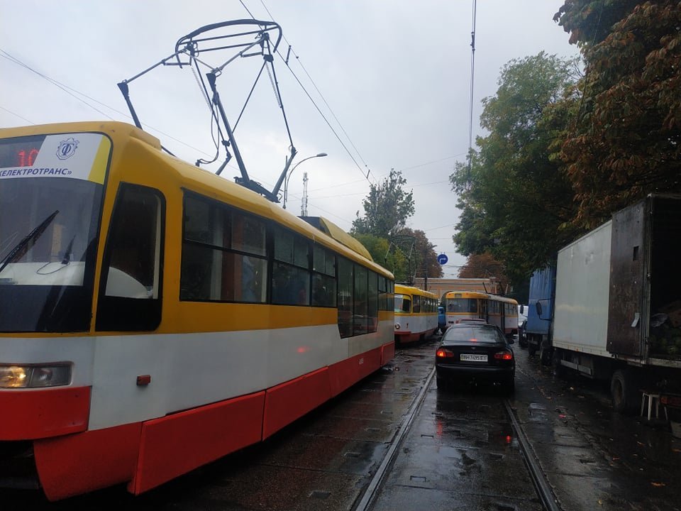 Из-за горе водителя на Французском бульваре было парализовано движение трамваем. 048.ua »