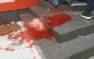 Офис партии Солидарность в Виннице залили "кровью". Таким образом активисты выразили протест против разгона палаточного городка в Киеве. k.img.com.ua »