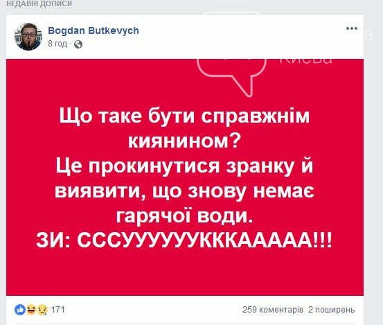 Глава правления «Нафтогаз Украины» Андрей Коболев в эфире «5 канала» заявил, что компания не может обеспечить киевлян горячей водой из-за больших долгов «Киевтеплоэнерго». inforesist.org »