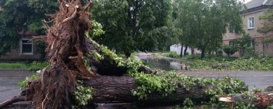 Шквальные порывы ветра повалили деревья, выпавший град размером с горошину повредил автомобили. k.img.com.ua »