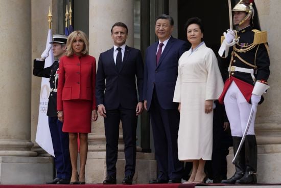 Сумка Chanel, коньяк и динозавр: Си Цзиньпин и Макрон обменялись подарками во время встречи — СМИ