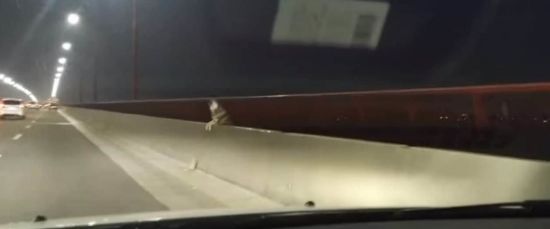Собака бежит на новый мост и облаивает машины, которые им курсируют. ru.tsn.ua »