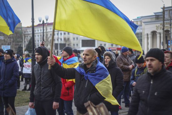 Жители Херсона собираются толпами, держа в руках флаги Украины и другие национальные символы. censor.net »