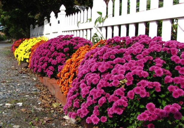 Осенью популярные цветы - хризантемы. Они устойчивы к холоду и можно сажать в любую погоду. Все равно порадуют цветом. Сейчас он бывает не только мелкий. Особенно модны махровые сорта с цветами на высоких стеблях. gazeta.ua »