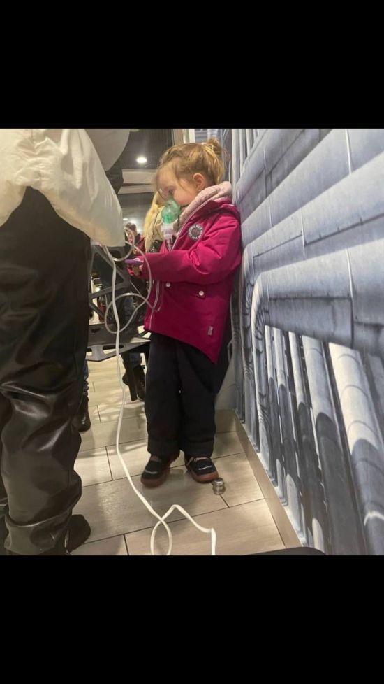 Под Киевом мать привела маленькую дочь в "Пункт несокрушимости", чтобы зарядить ингалятор: щемящее фото