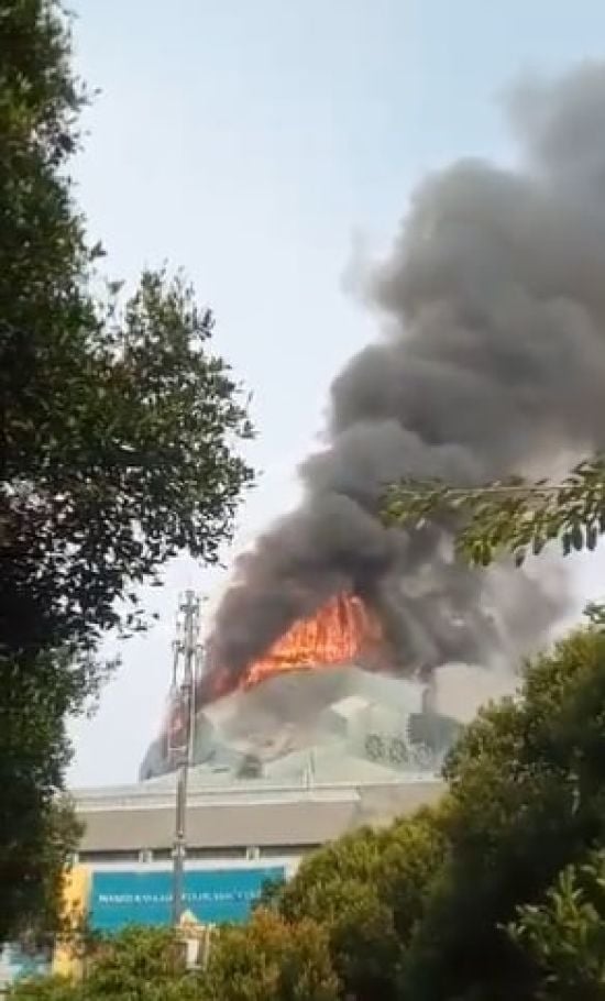 В столице Индонезии вспыхнул масштабный пожар в мечети: в Сети появилось видео