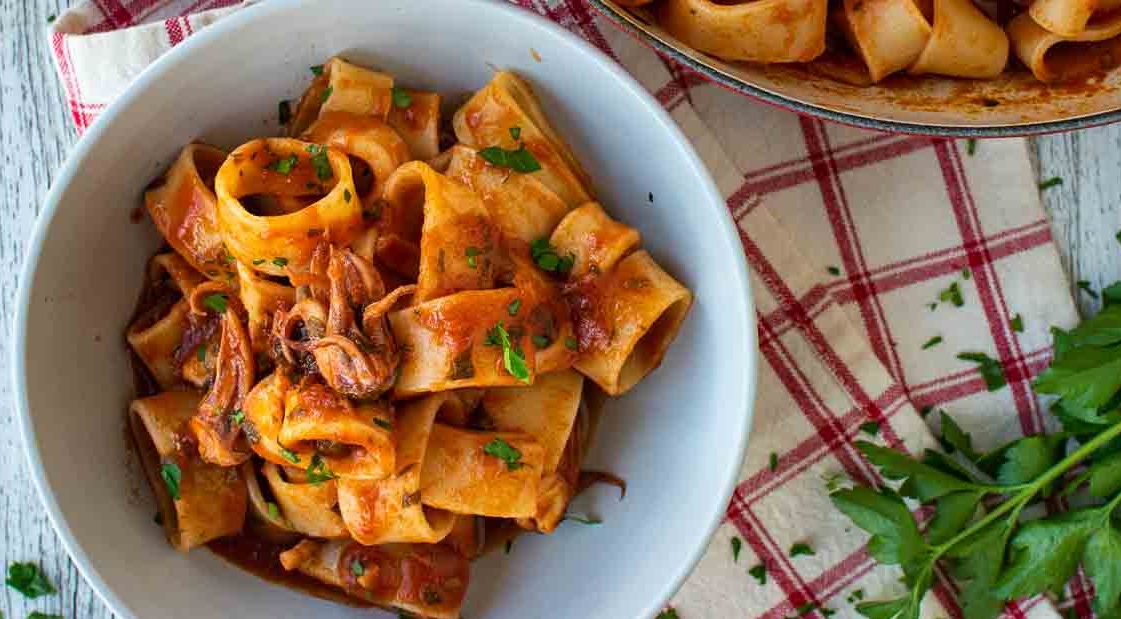 Паста Кальмарата: рецепт вкуснейшего блюда с кальмарами и томатным соусом
