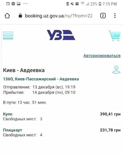 Ограничение движения поезда Киев-Авдеевка продлили до 3 сентября