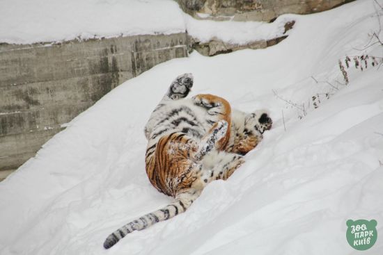 Тигры с удовольствием катаются в снегу, львы за ними наблюдают, верблюды удивляются такому чуду, енот исследует свои владения, покрытые снегом. ru.tsn.ua »