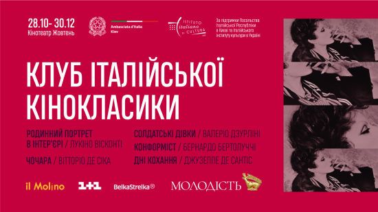 Итальянский кинематограф 50-80-х годов прошлого столетия стал золотым фондом мировой культуры. Кинофестиваль "Молодость" при поддержке посольства Италии и Итальянского института в Украине прошлой весной показали 10 фильмов выдающихся итальянских режиссеров — Федерико Феллини, Лукино Висконти, Микеланджело Антониони, Пьера Паоло Пазолини и других. Некоторые фильмы впервые демонстрировались в полной режиссерской версии, а все – в качественной реставрации. Демонстрация фильмов вызвала большой интерес и просьбу продолжить "Клуб итальянской киноклассики". ru.tsn.ua »