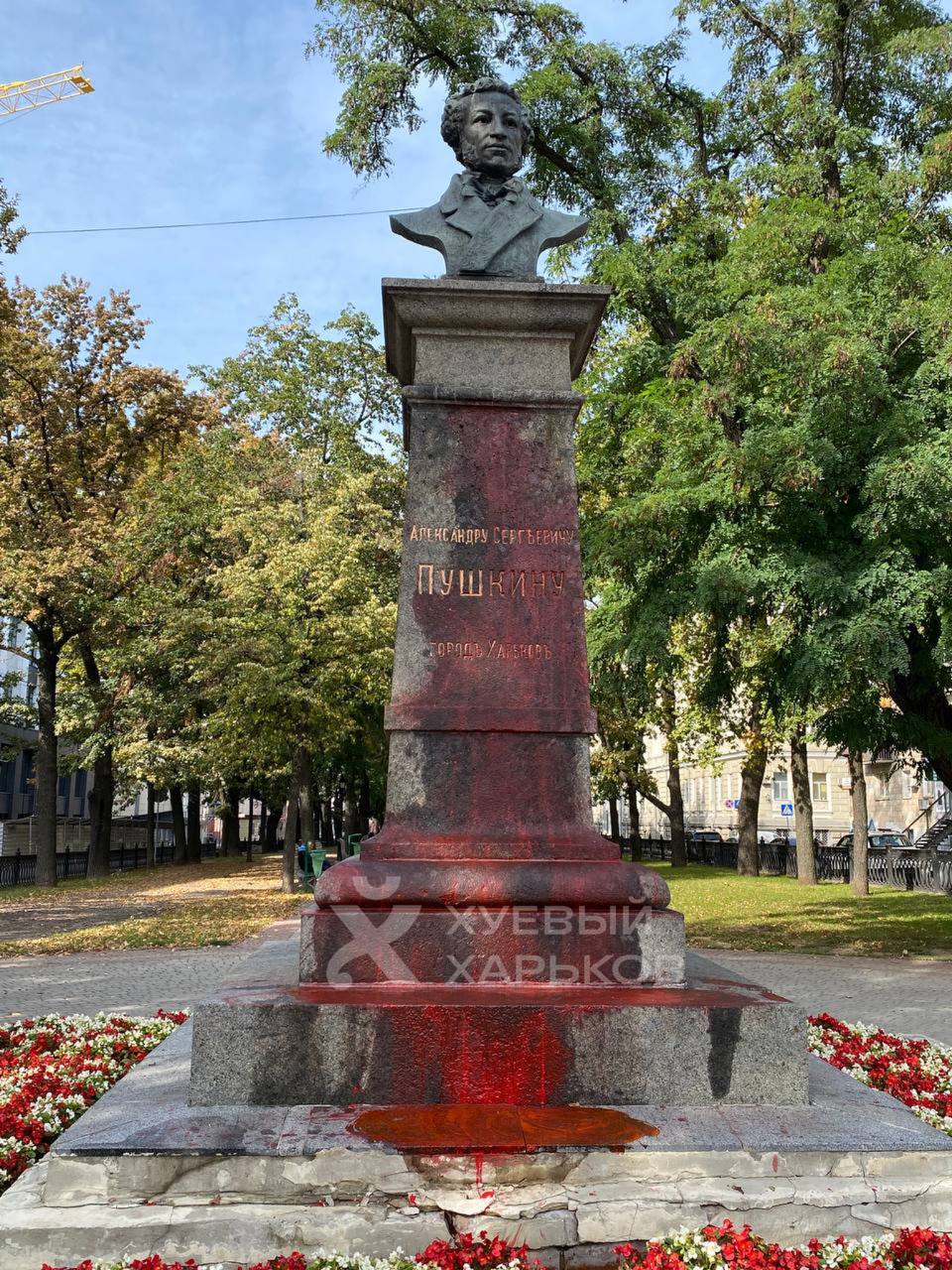 В Харькове памятник российскому классику облили "кровью" (фото)