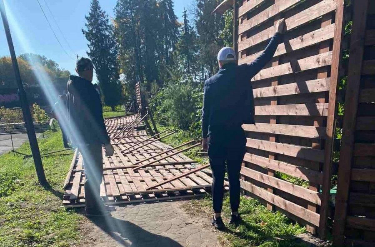 Сломана ключица и разбита нога: во Львове на женщину в парке упал кусок двухметрового забора