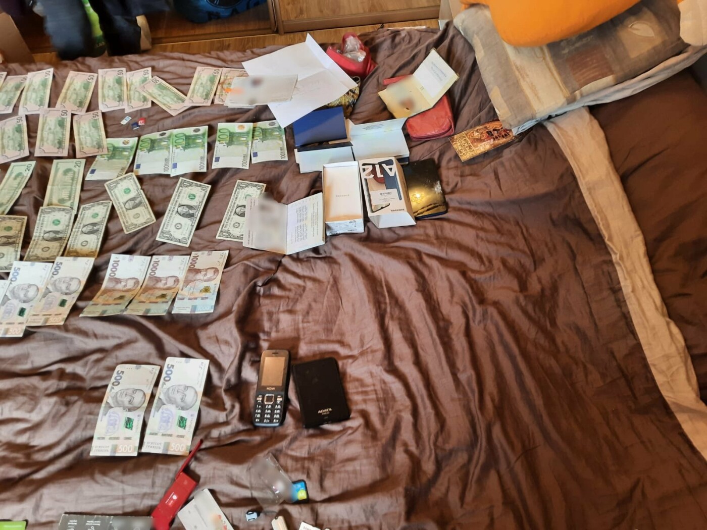 В ходе обысков были изъяты черновые записи, 55 мобильных телефонов, более 100 сим-карт операторов мобильной связи и банковские карточки. k.img.com.ua »