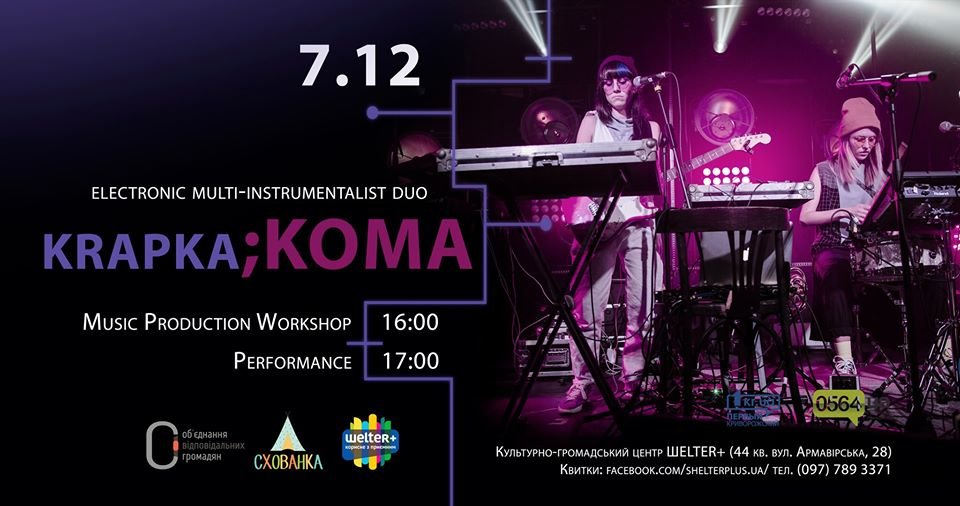 Вчера, 7 декабря, в Культурно-общественном центре ШELTER + состоялся концерт нового украинского электронного проекта electronic multi-instrumentalist duo krapka; KOMA. 0564.ua »
