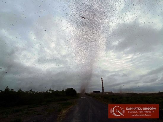 В России на полуострове Камчатка огромные рои насекомых образовывают смерчи. Об этом сообщает российское издание «Камчатка-инфо». Феномен был зафиксирован в поселке Усть-Камчатск. Энтомолог Людмила Лобкова рассказывает, что подобные смерчи не являются опасными для людей. inforesist.org »