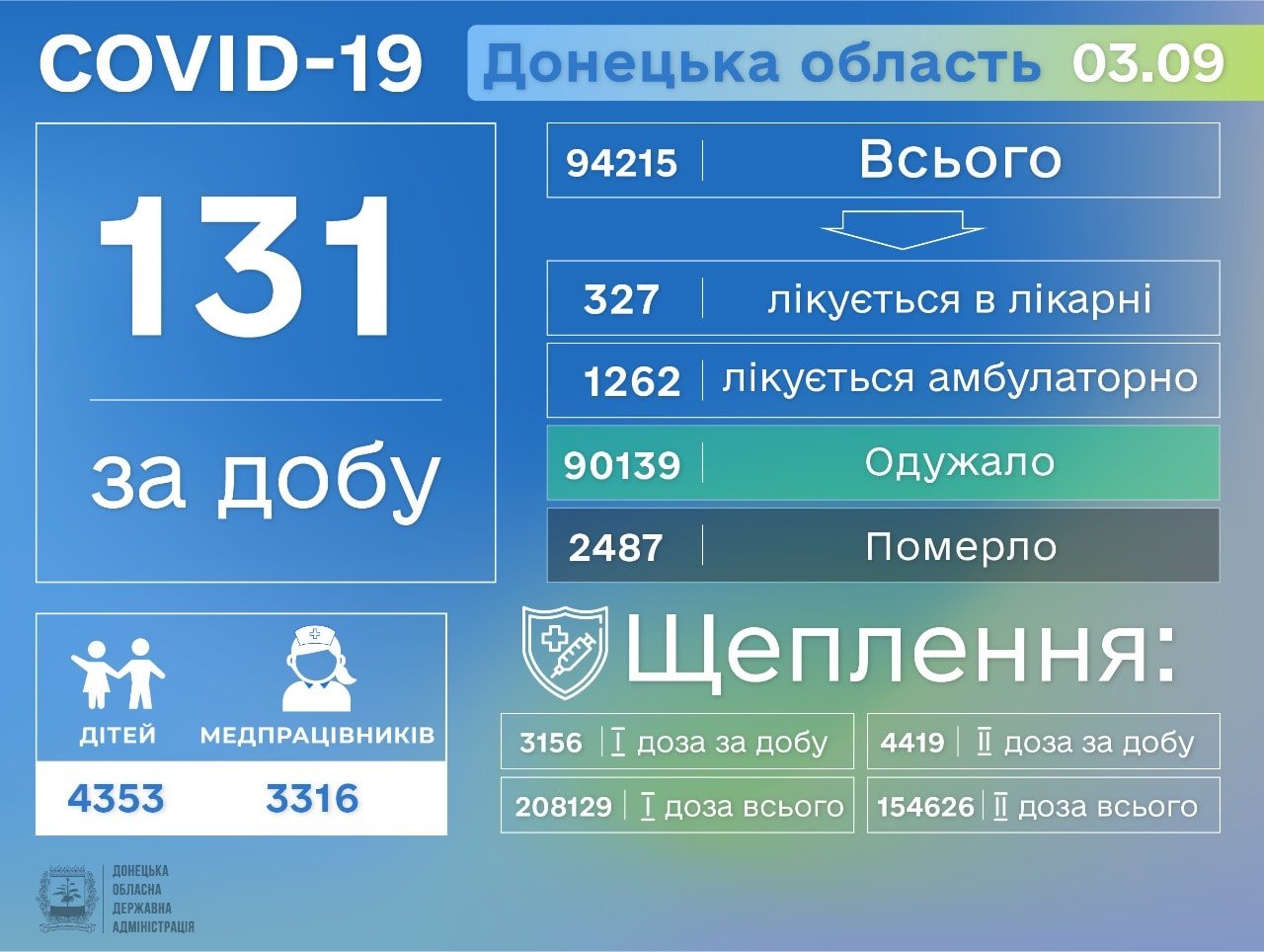За пятницу, 3 сентября, в области выявлено еще 131 больных 62.ua »