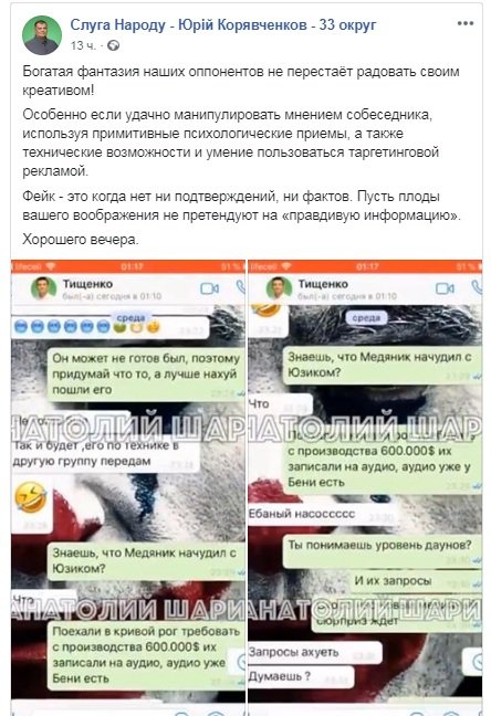 Иня Юрия Корявченкова фигурирует в переписке пранкера с нардепом Николаем Тищенко. 0564.ua »